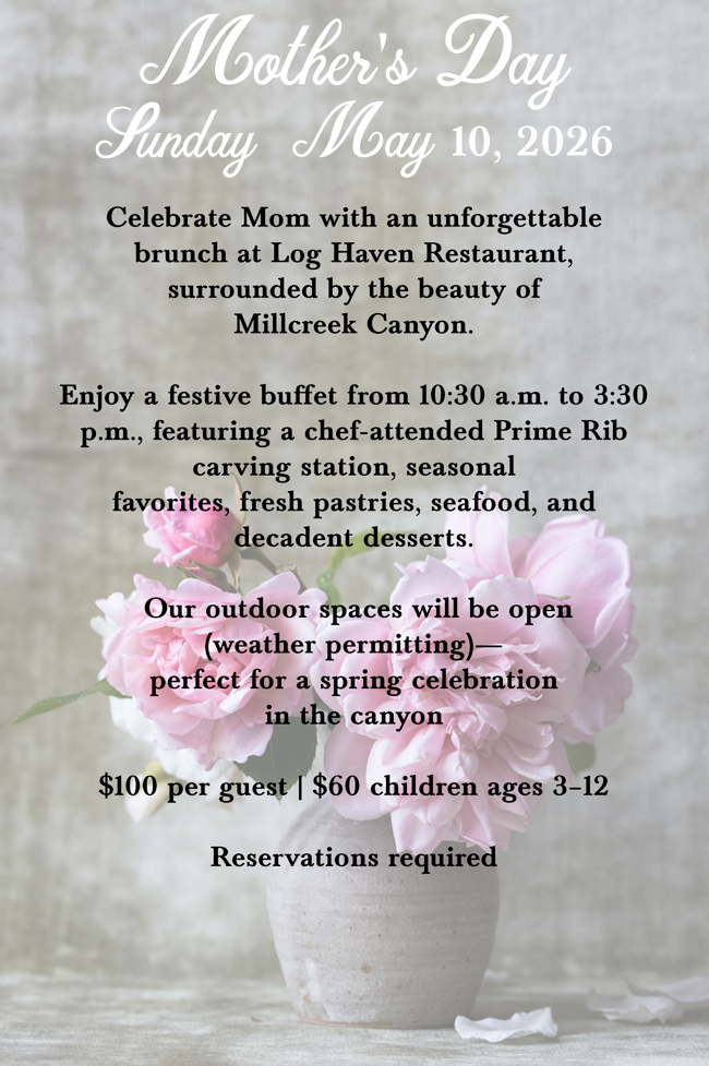 Consistently awarded “Most Romantic Restaurant” by Utah publications, Log Haven has carried on its pioneering tradition as a cherished gathering place. The distinctive dining destination is now a favorite spot for fine dining, weddings, anniversaries and celebrations of all kinds.
